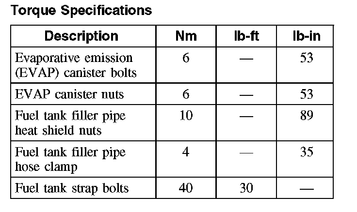 Evaporative Emissions System: Specifications