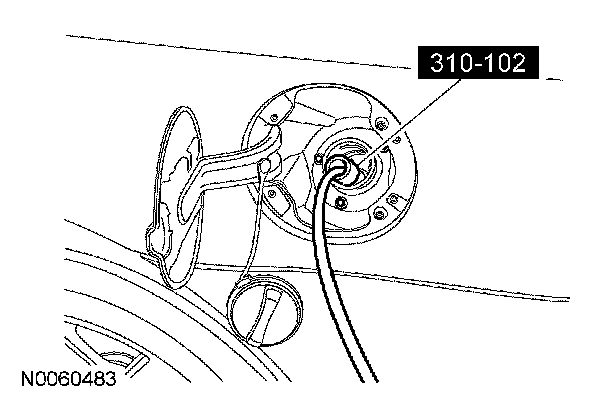 NOTE: The special tool must be inserted into the fuel tank filler pipe until the fitting on the end of the hose enters into the fuel tank, opening the one-way flapper valve.