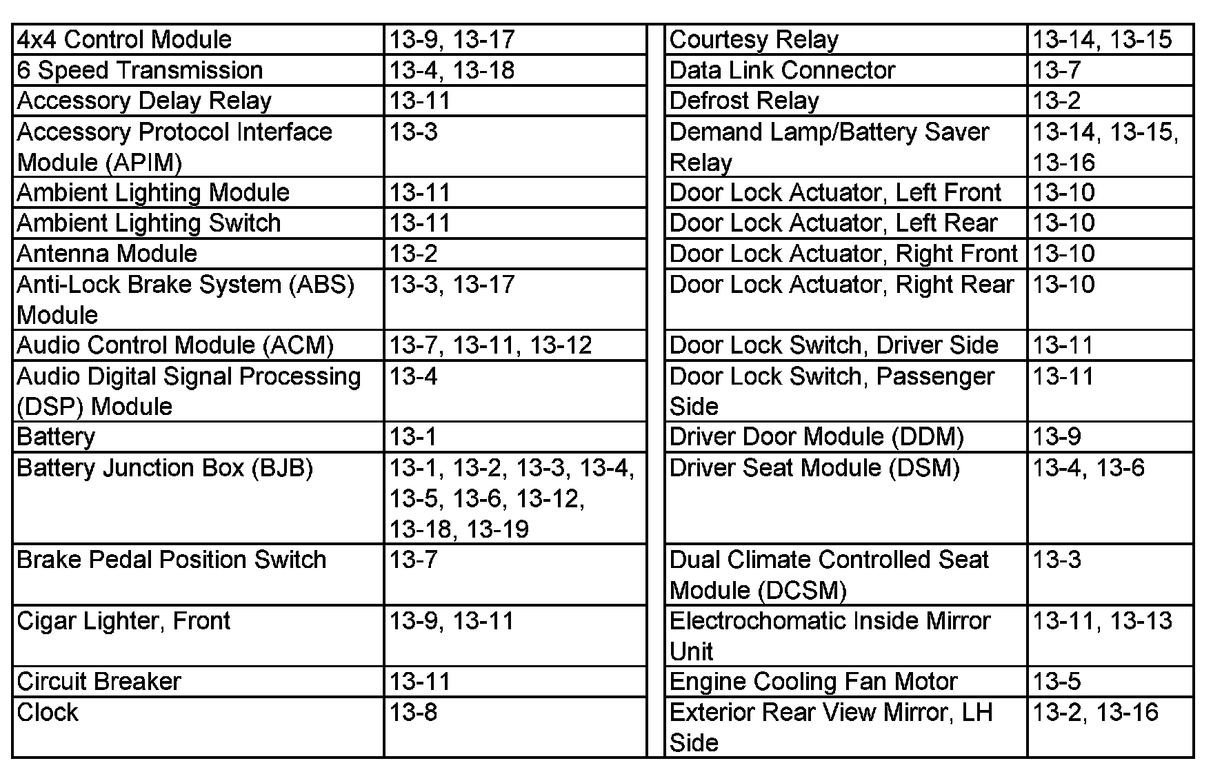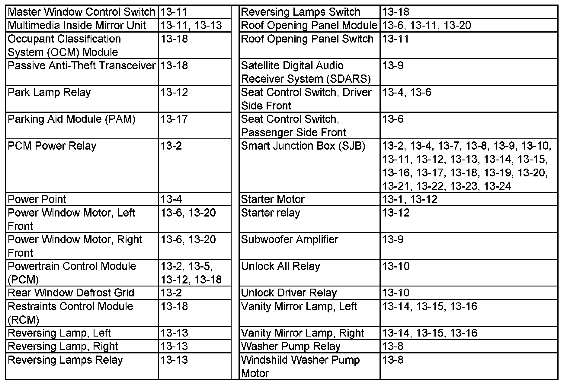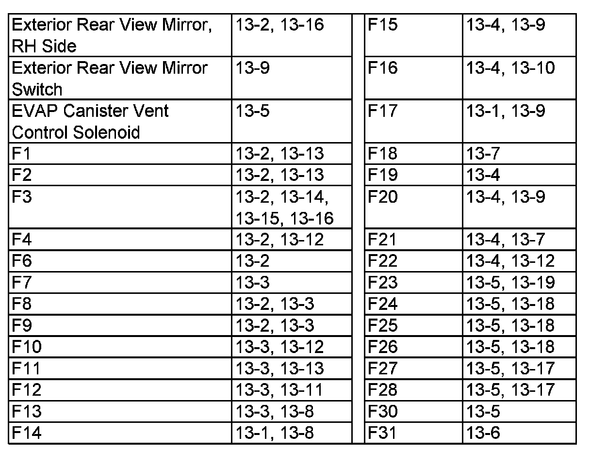 PLEASE NOTE: If a link on the index to a specific diagram listed therein is not provided, that means that the diagram in question does NOT apply to the vehicle model selected.