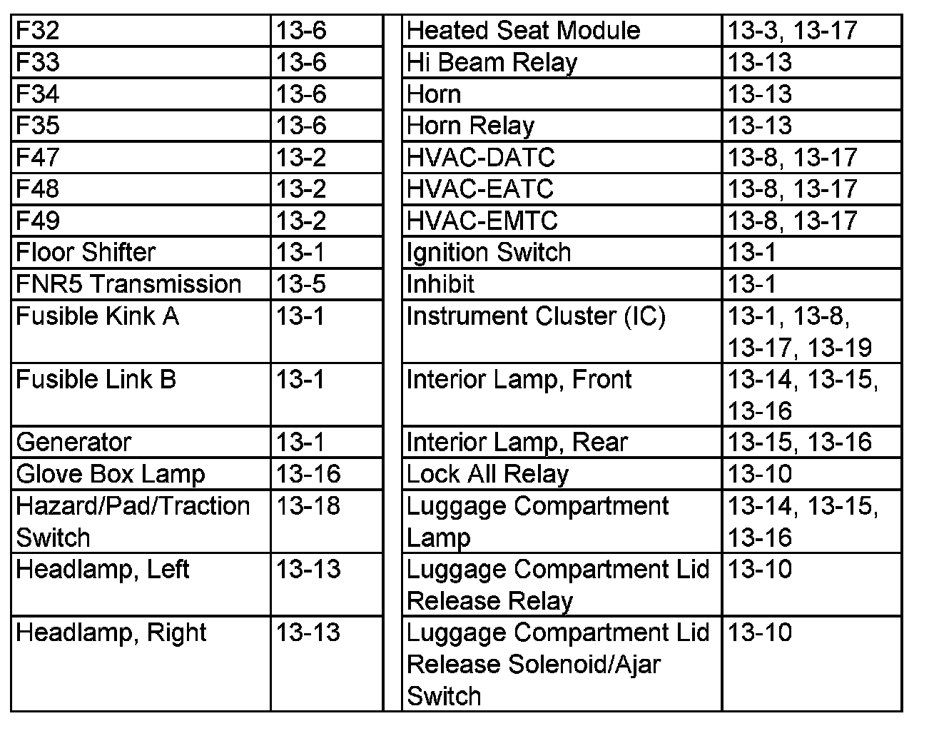 Fuse 32 - Luggage Compartment Lid Release Solenoid/Ajar Switch: