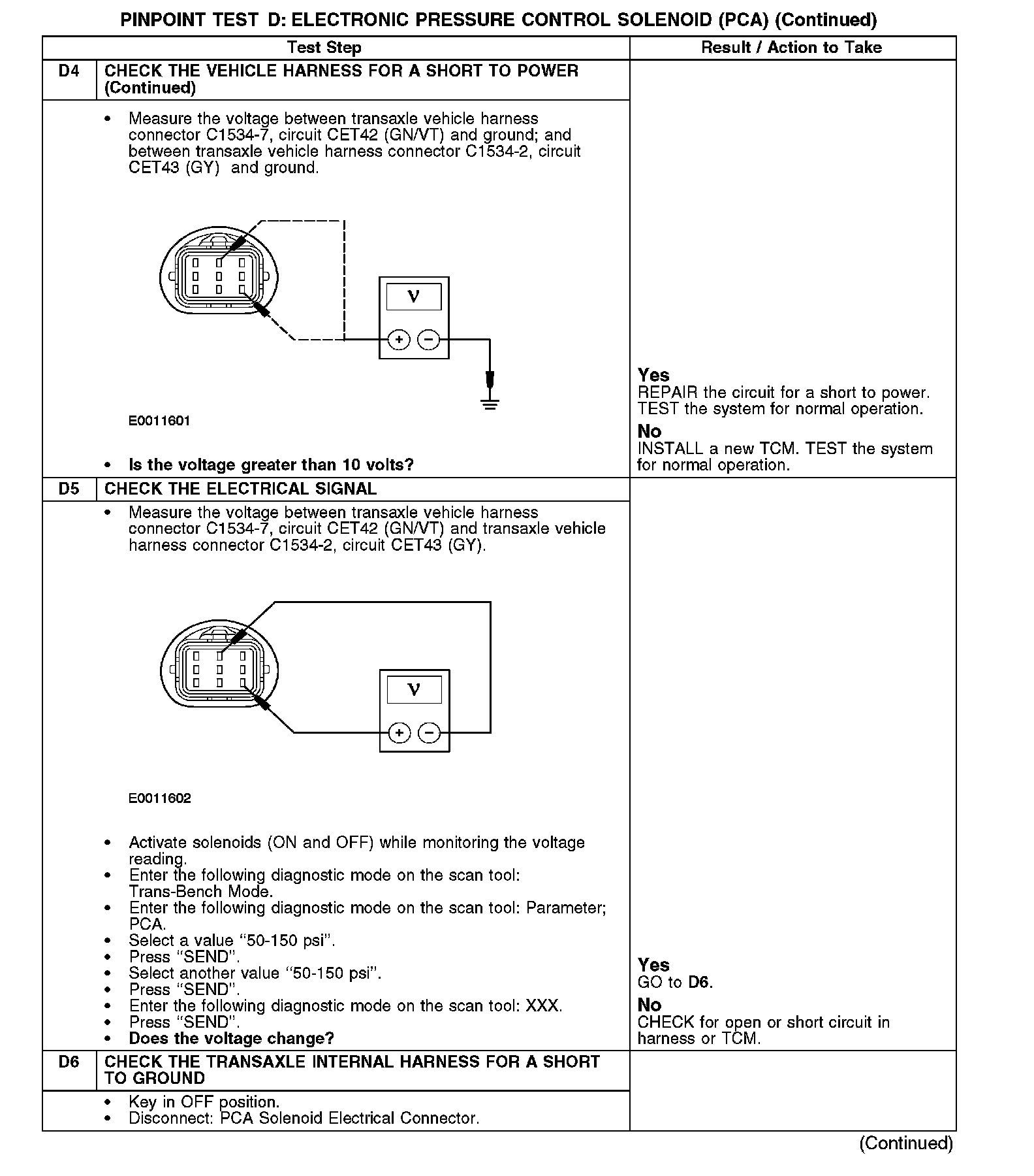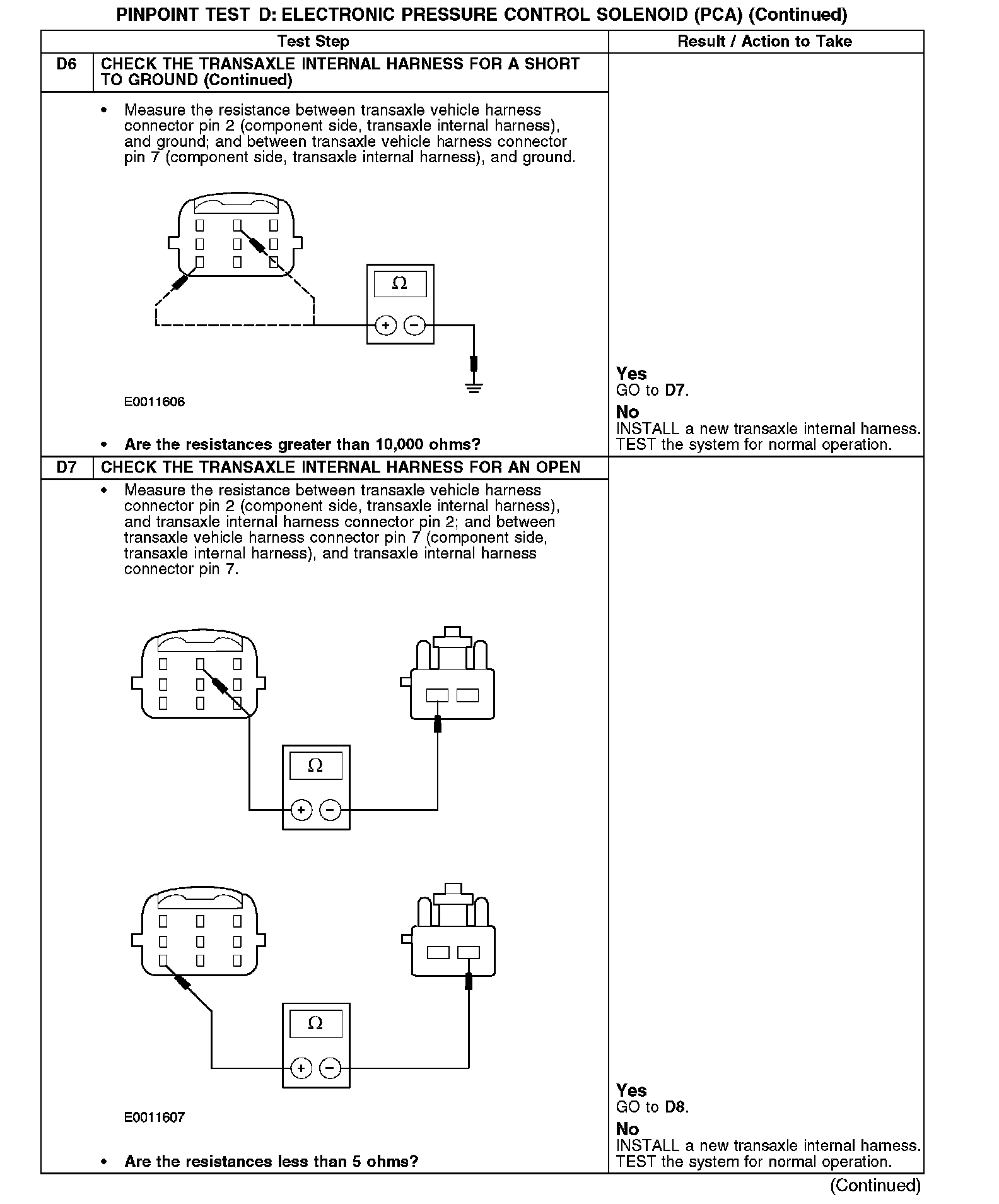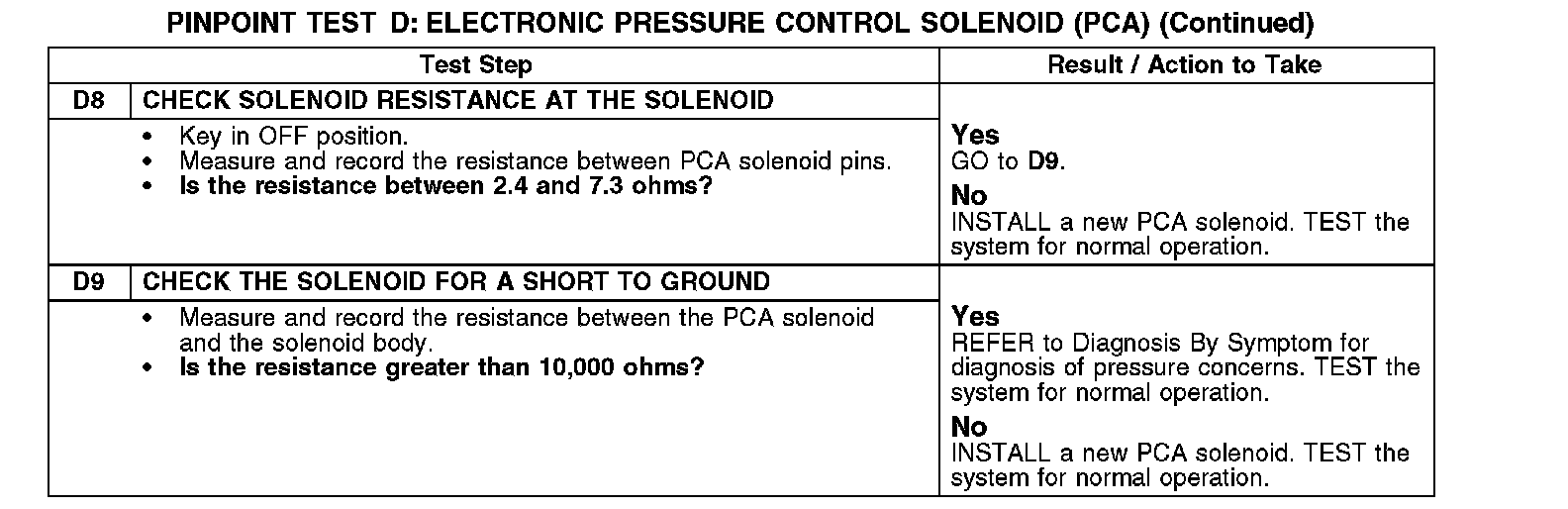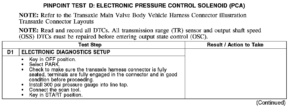 PINPOINT TEST D: ELECTRONIC PRESSURE CONTROL SOLENOID (PCA)
