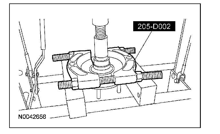 2. Using the special tool, press the wheel hub from the wheel bearing.