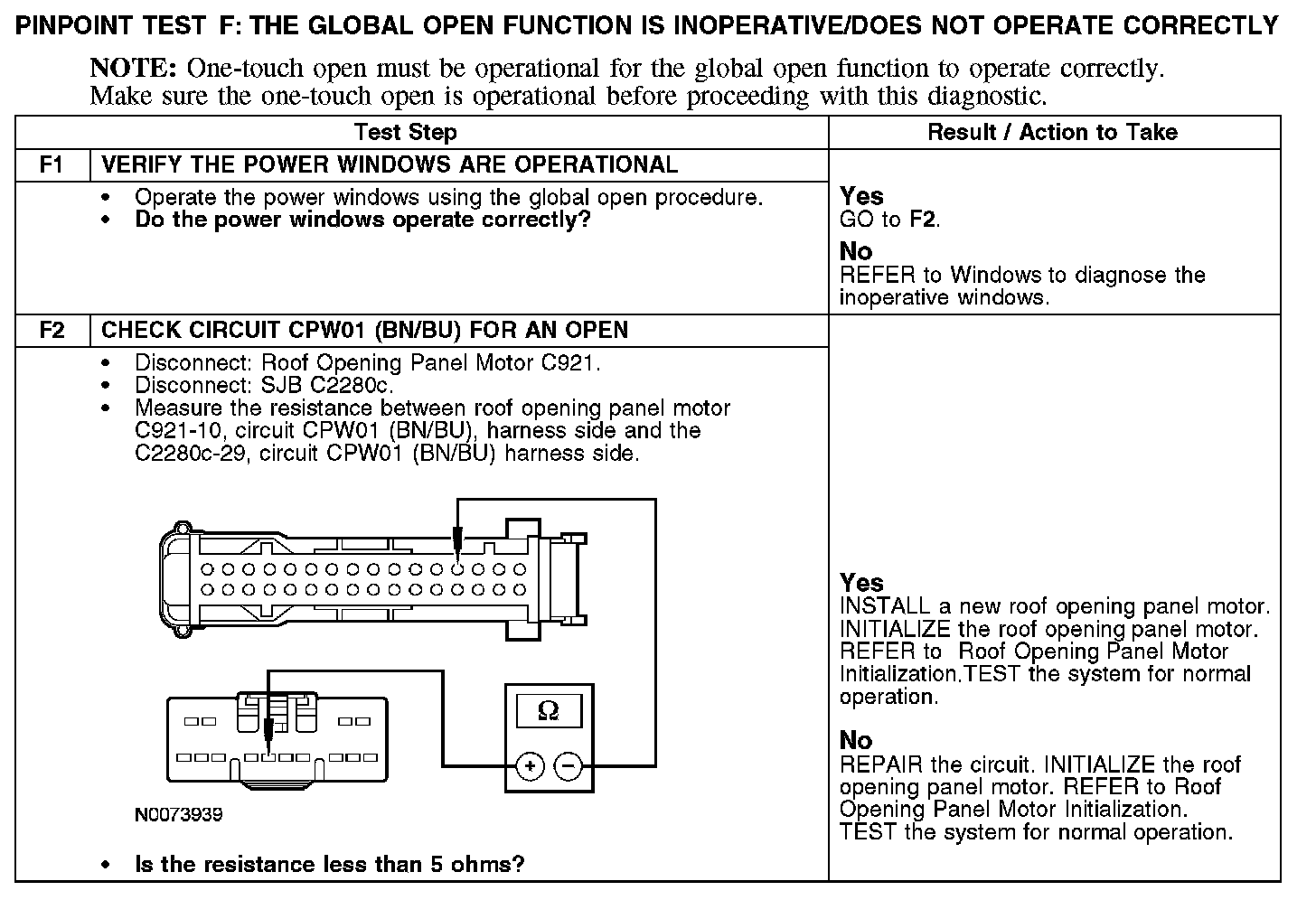 PINPOINT TEST F: THE GLOBAL OPEN FUNCTION IS INOPERATIVE/DOES NOT OPERATE CORRECTLYNormal Operation