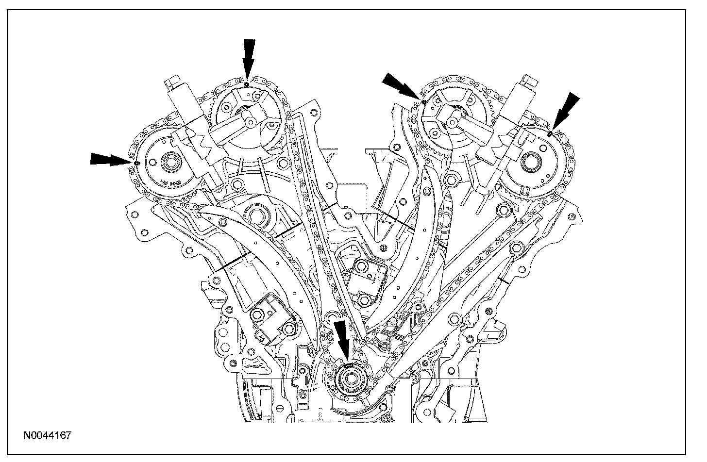 12. Verify the LH camshafts are in the neutral position.