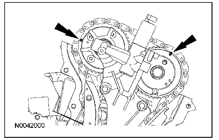 ^ Verify that the camshafts are correctly located. If not, rotate the crankshaft one additional turn and recheck.