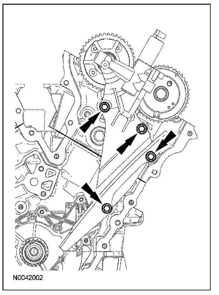 8. Remove the RH timing chain tensioner arm.