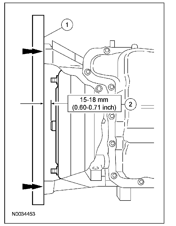 2 Check the installation depth between the transaxle flange and the torque converter centering spigot for the correct clearance.