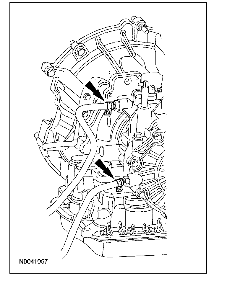 NOTE: If the transaxle was overhauled, or if installing a new transaxle and the transmission fluid cooler has not been flushed, flush the transmission fluid cooler at this time. For additional information, refer to Transmission Fluid Cooler Backflushing and Cleaning.