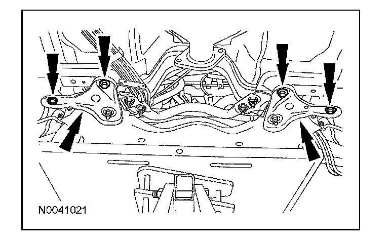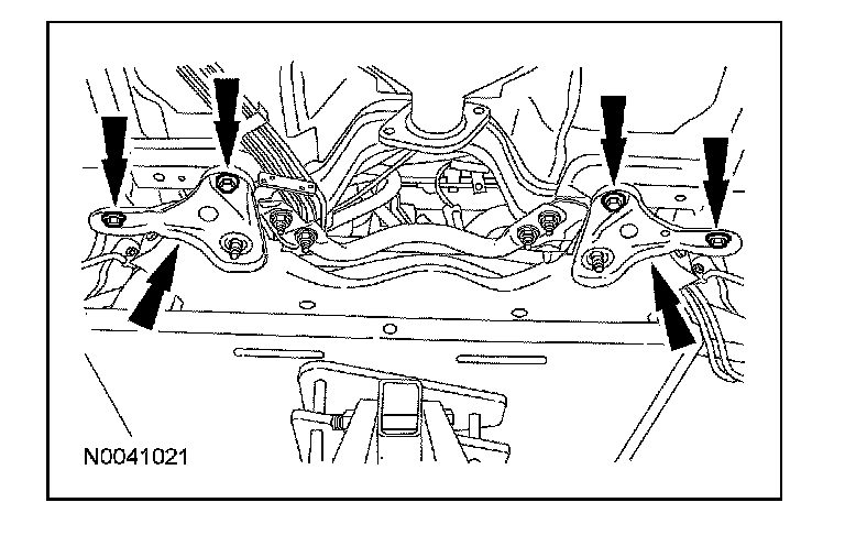 17. Position the subframe support brackets in place and loosely install the bolts.