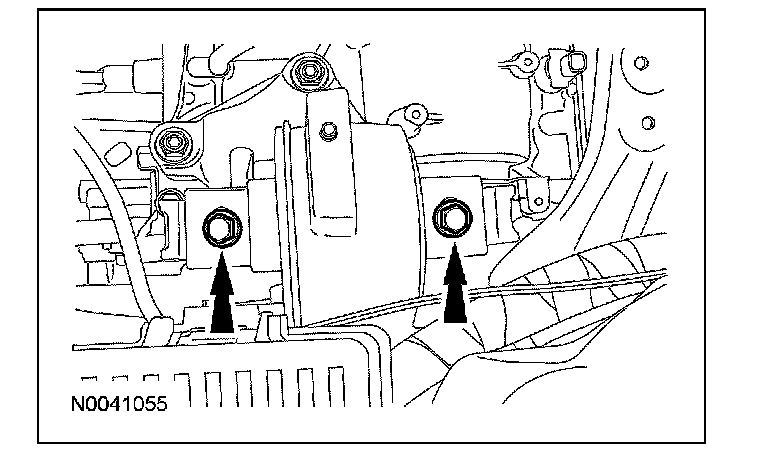 35. Raise the transaxle and install the 2 transaxle insulator bolts.