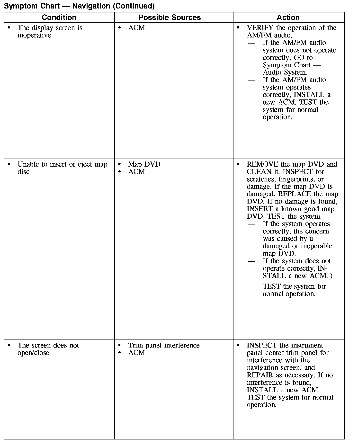 Symptom Chart - Navigation (Part 2):
