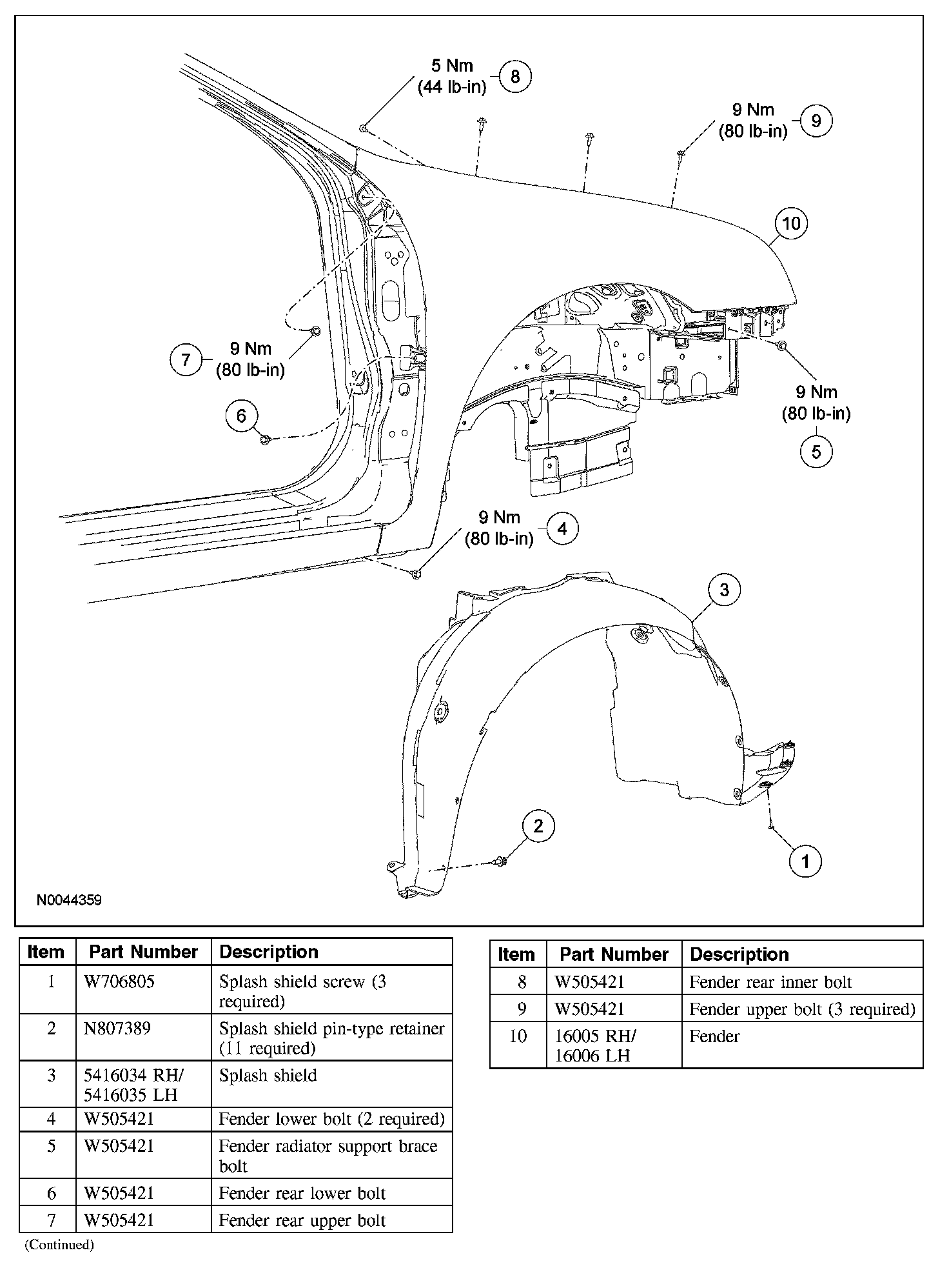 NOTE: The front door must be open to gain access to the rear fender bolts.