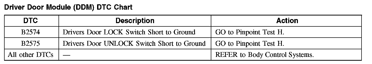 Driver Door Module (DDM) DTC Chart
