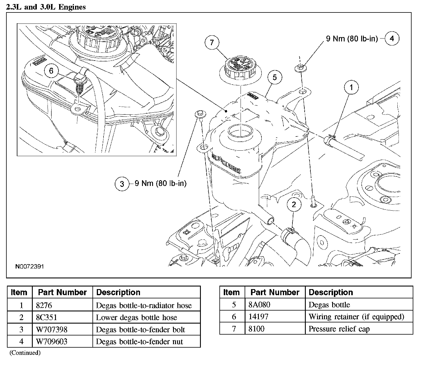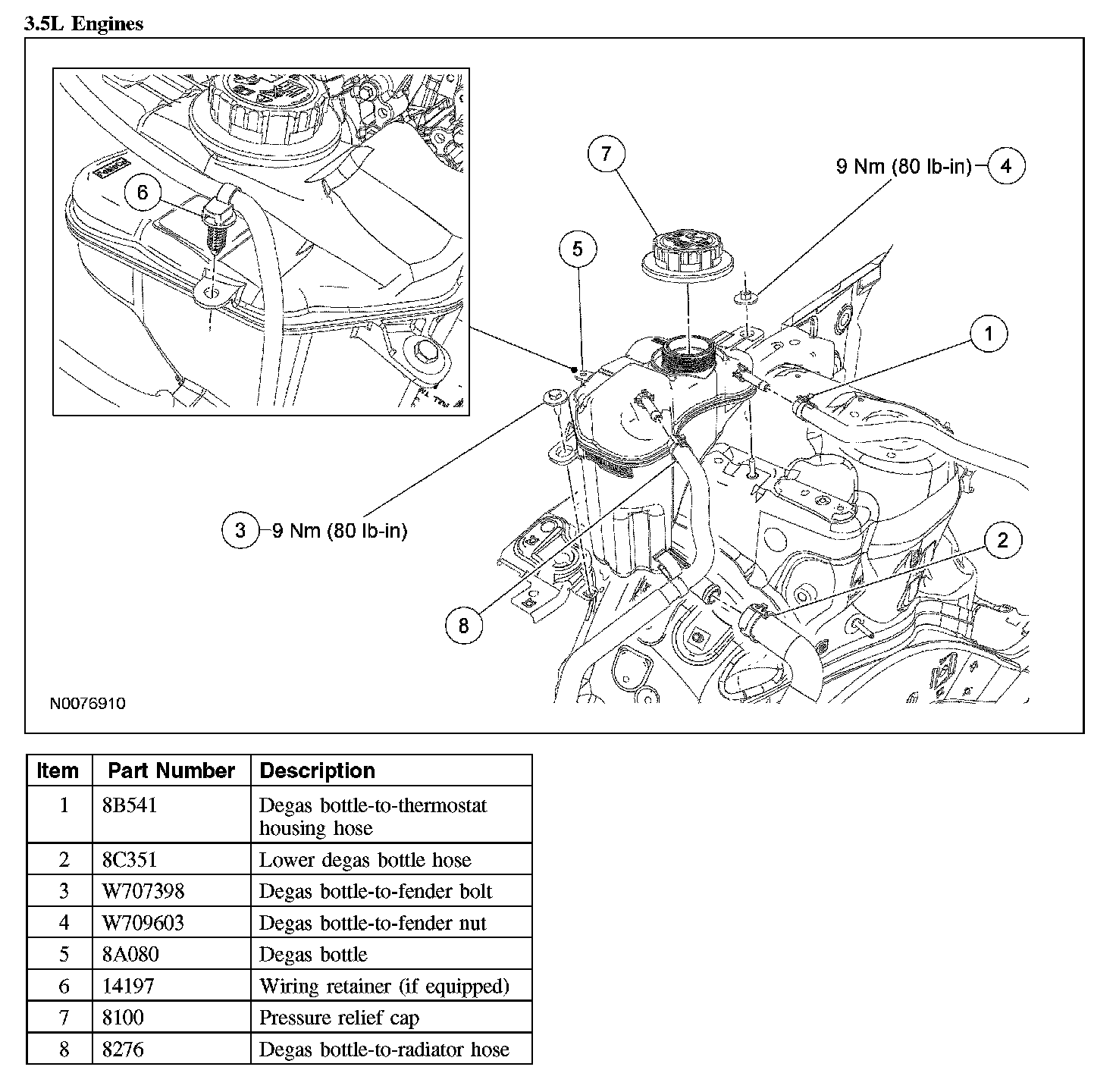 6. Disconnect the degas bottle-to-thermostat housing hose and position aside.