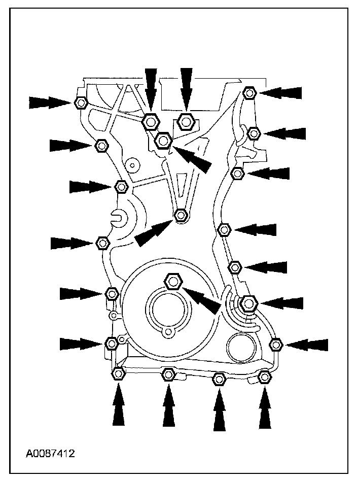 13. Remove the 22 bolts and the engine front cover.