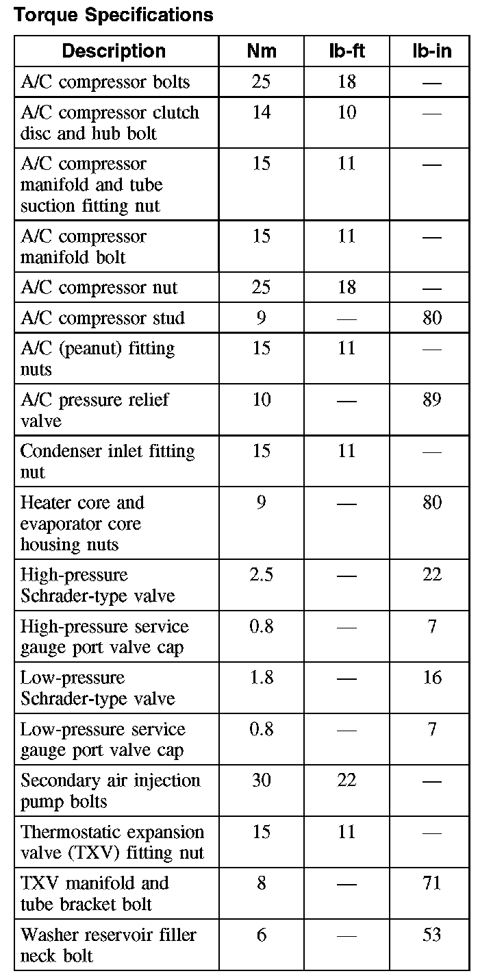 Torque Specifications: