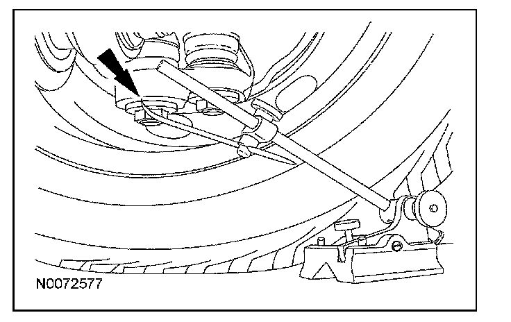 2. Measure the distance between the flat level surface and the center of the lower arm outboard bolt (measurement B).