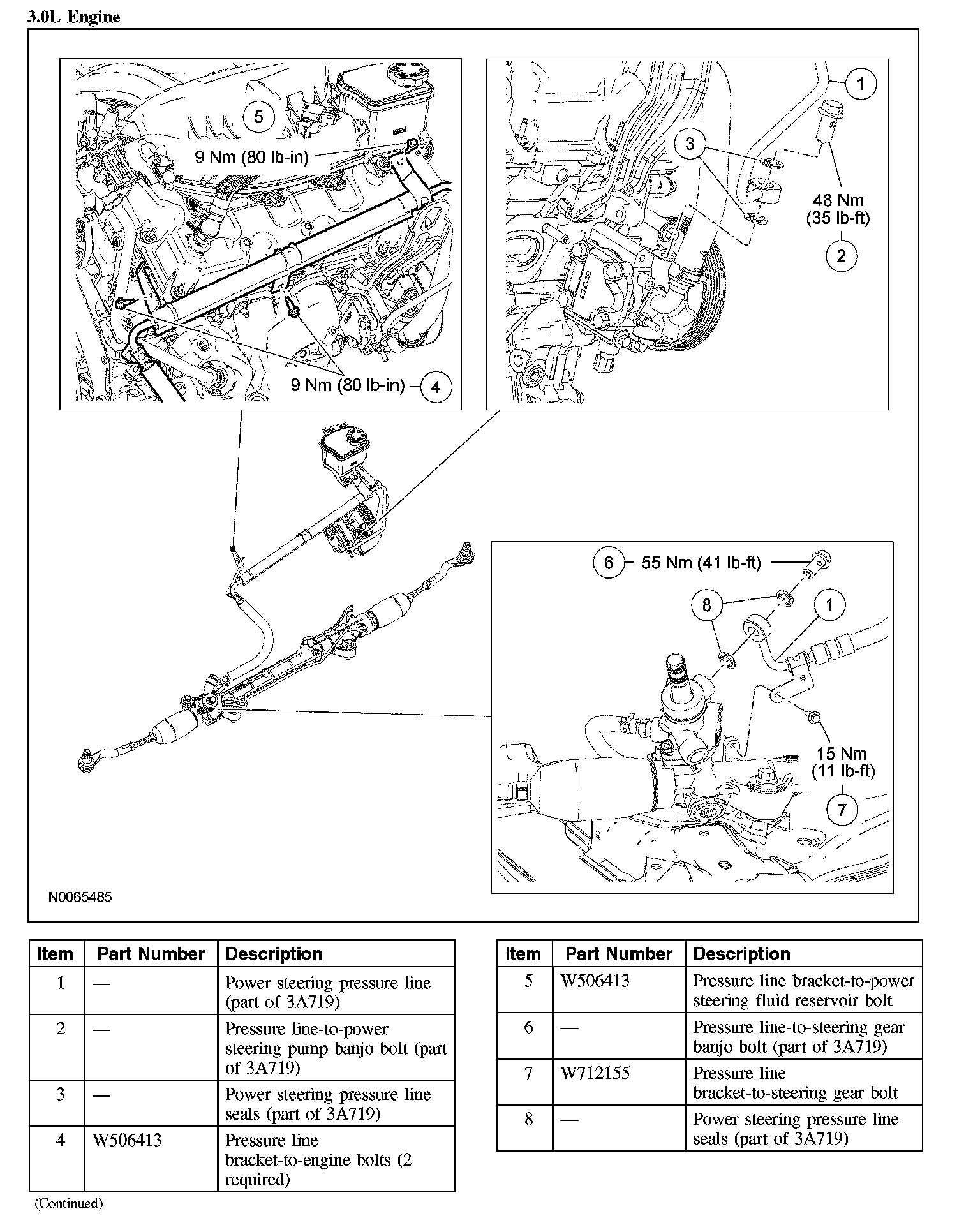 17. CAUTION: New banjo bolts and new seals must be installed any time the power steering pressure line is disconnected from the power steering pump and/or the power steering gear or a fluid leak may occur.