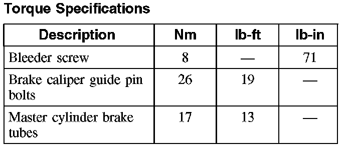 Torque Specifications: