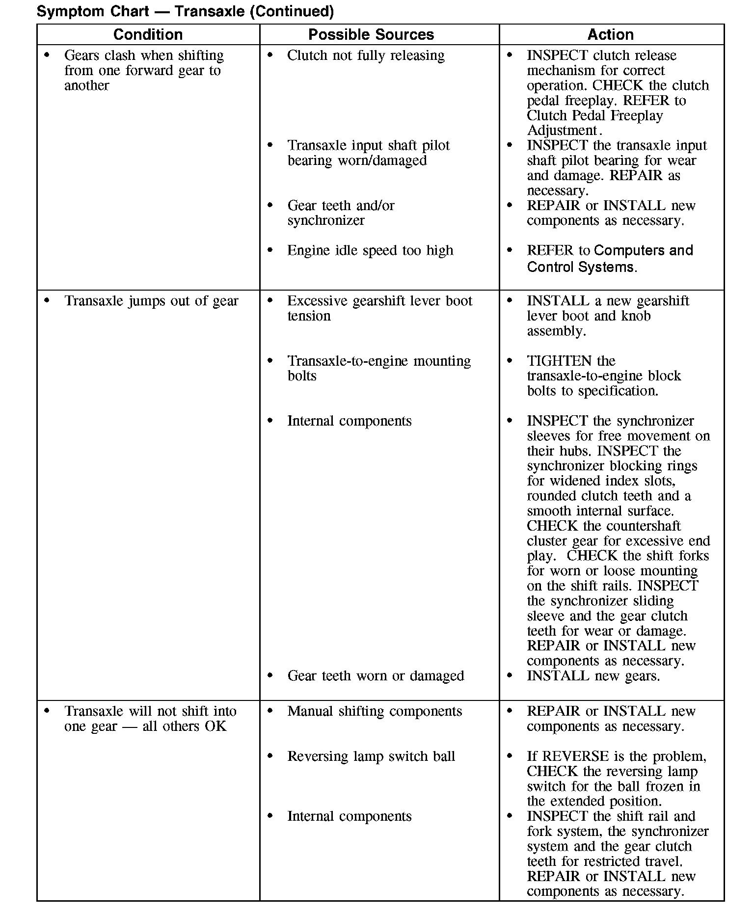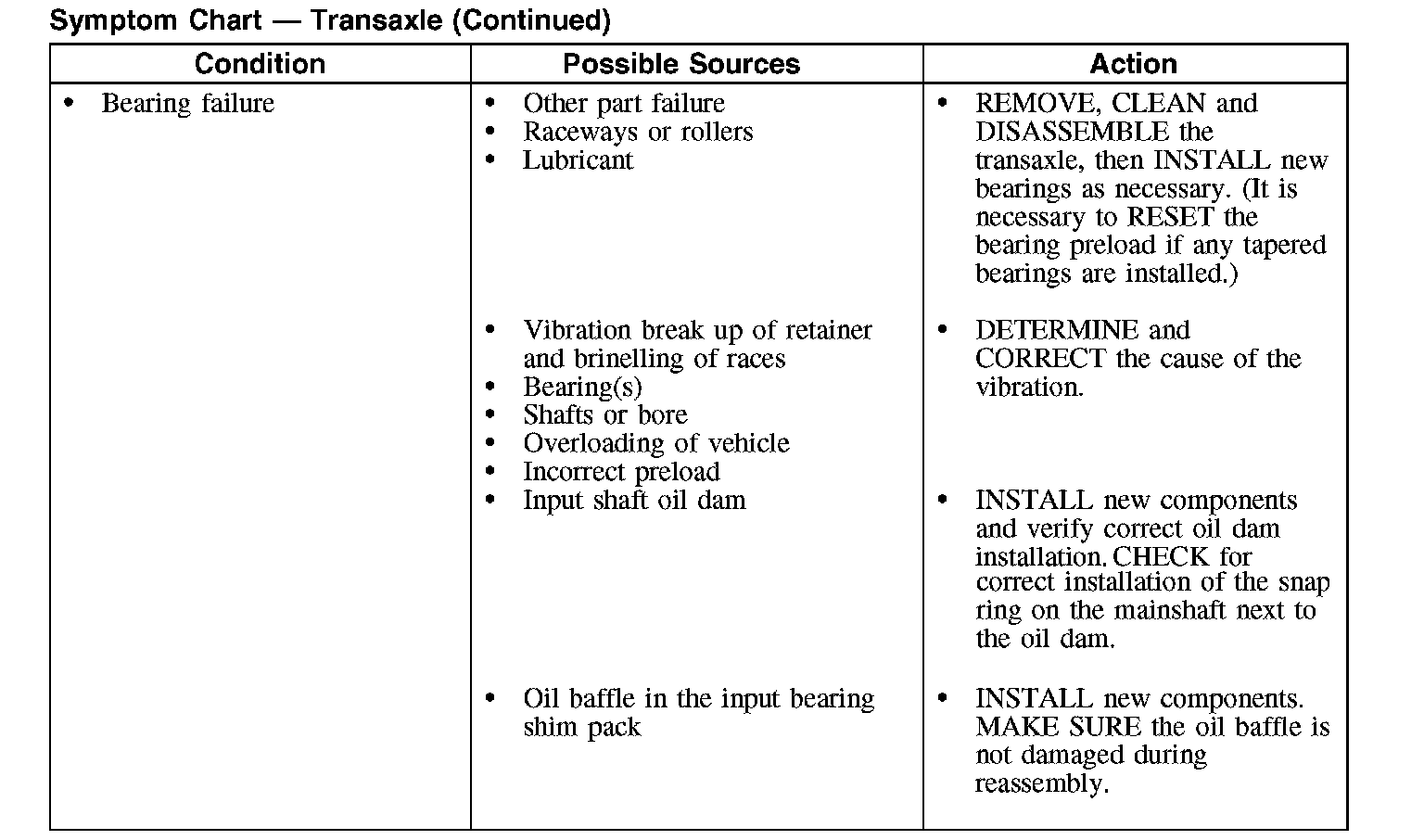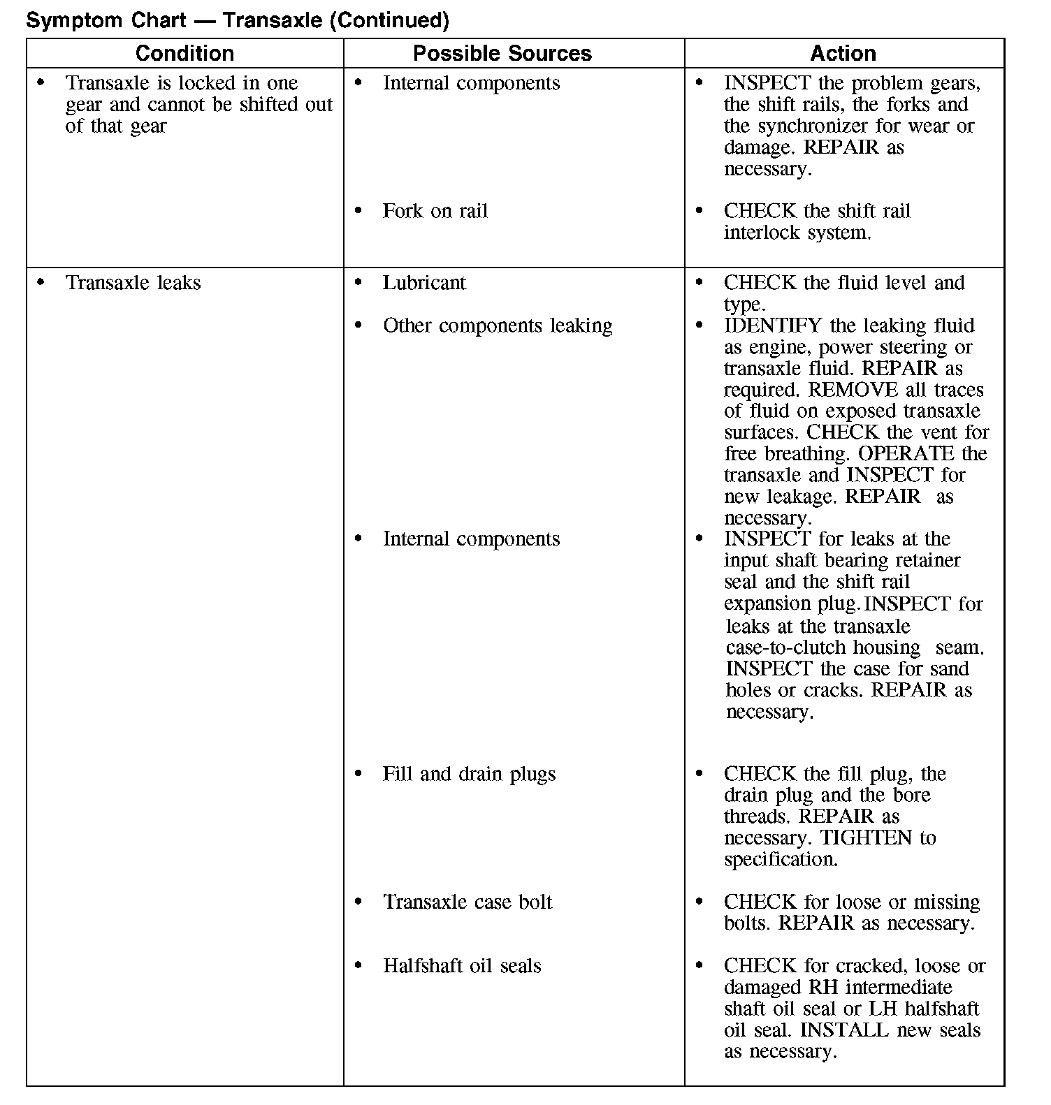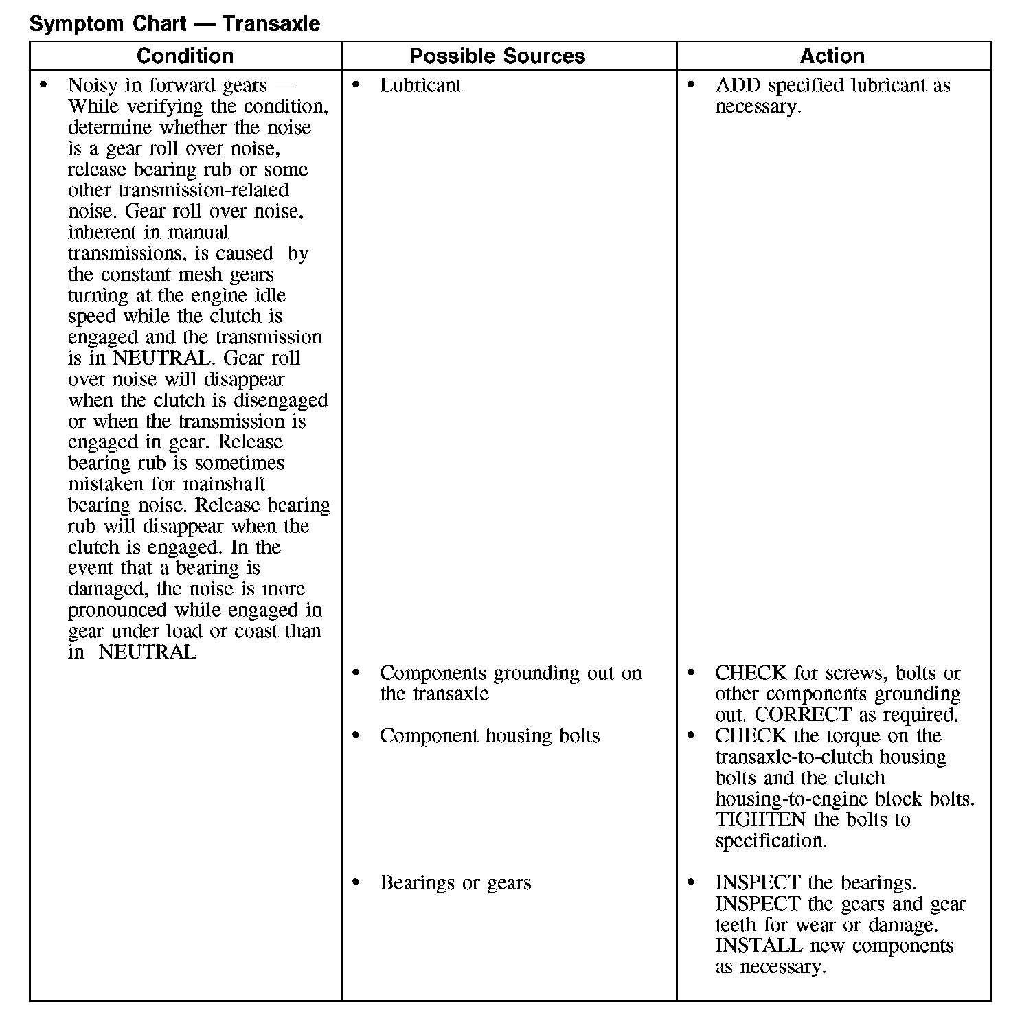Symptom Chart - Transaxle