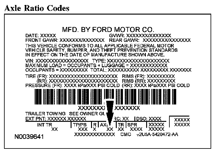 Axle Ratio Codes: