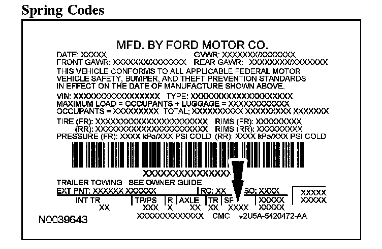 The spring code portion of the VC label identifies both the front and rear springs. The first set of characters listed indicate the front spring code. The second set of characters indicate the rear spring code.