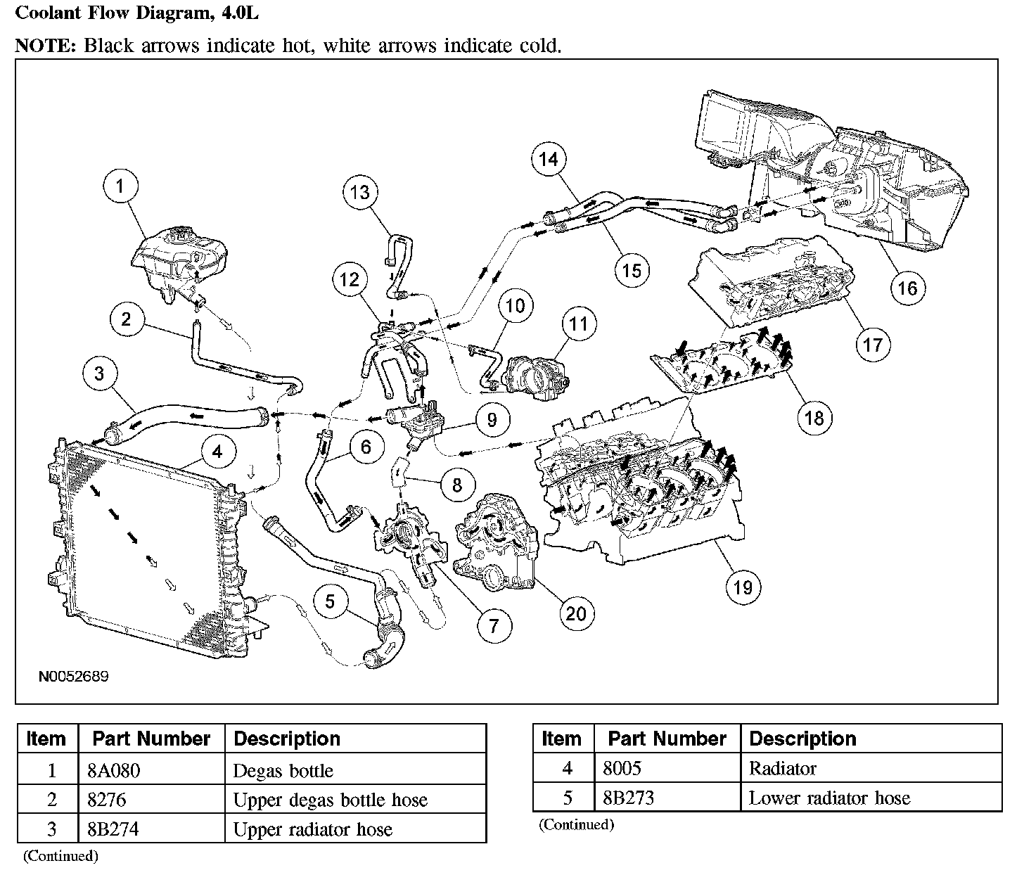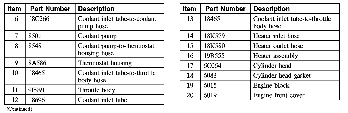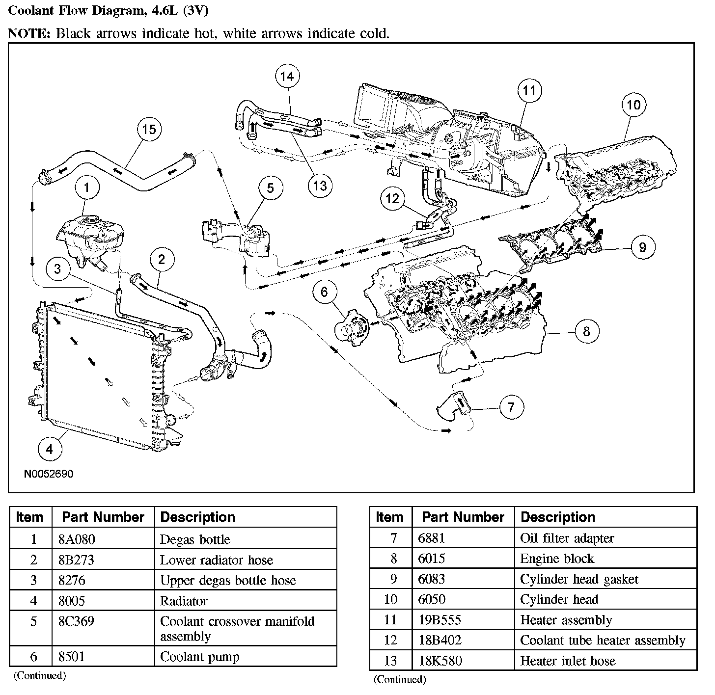 The 4.6L (3V) and 5.4L (4V) cooling system components include the: