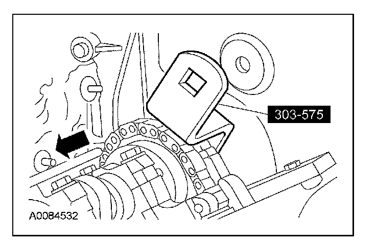 Using the special tool with the Camshaft Sprocket Nut Socket 303-565, loosen the RH camshaft sprocket bolt.