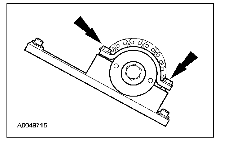 Position the camshaft timing slots below the centerline of the camshaft to correctly fit the special tools, and install the special tools on the rear of the LH cylinder head.