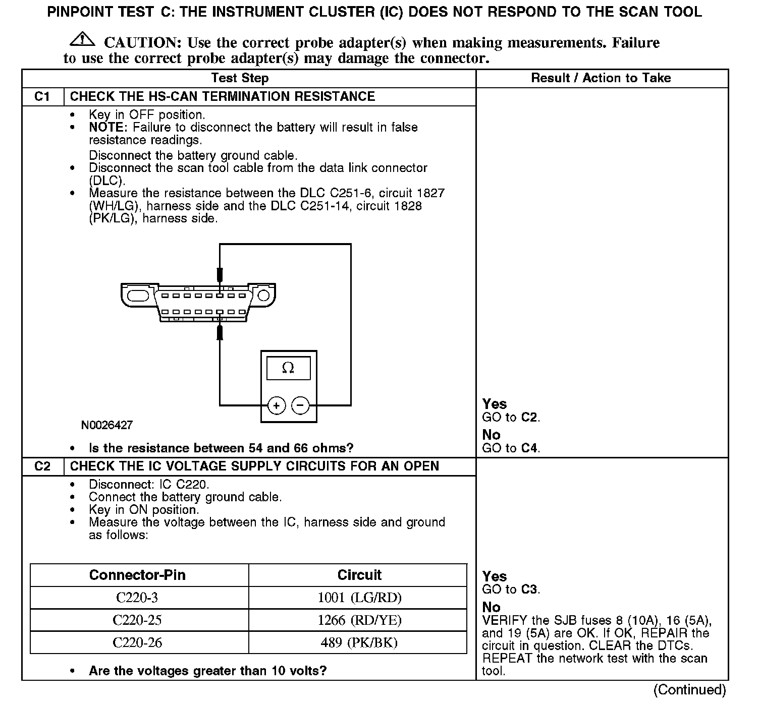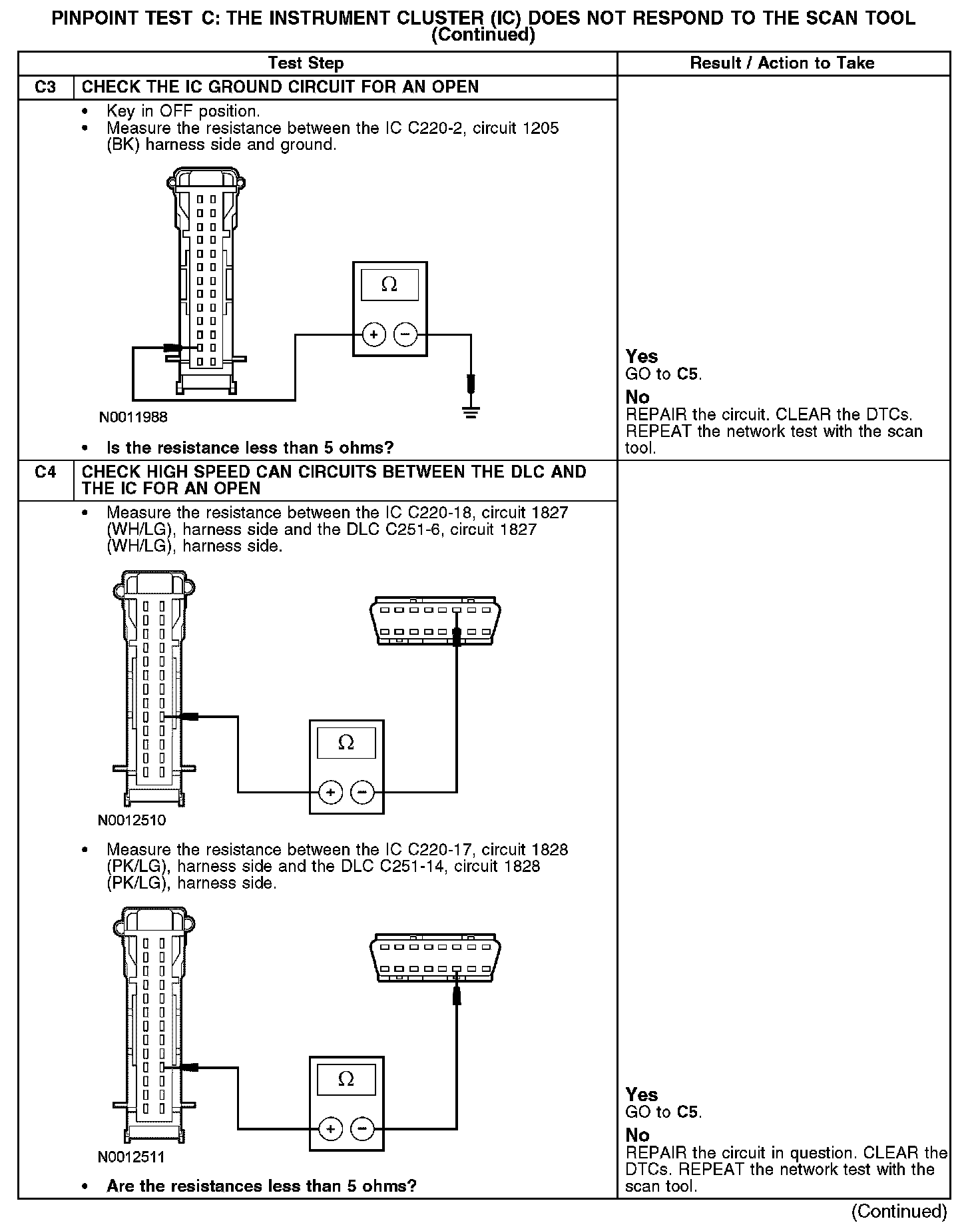 Test C: The Instrument Cluster (IC) Does Not Respond To The Scan Tool