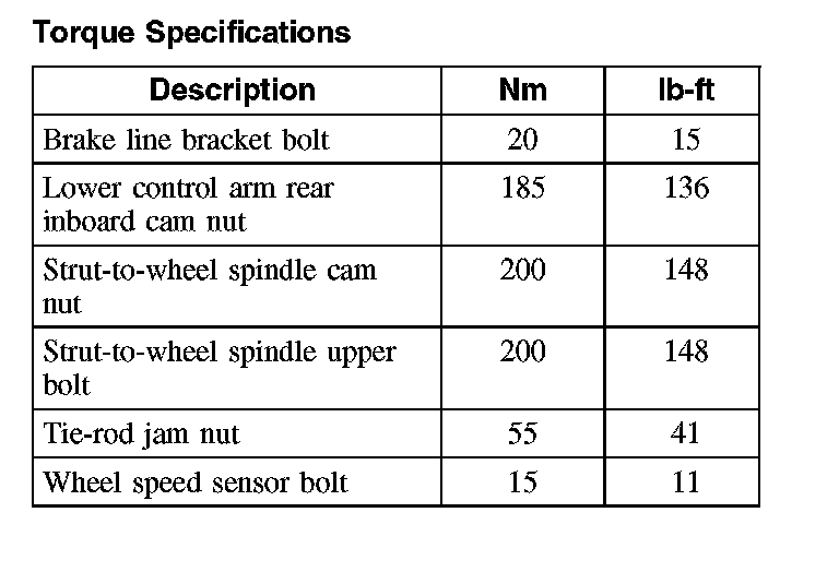 Torque Specifications: