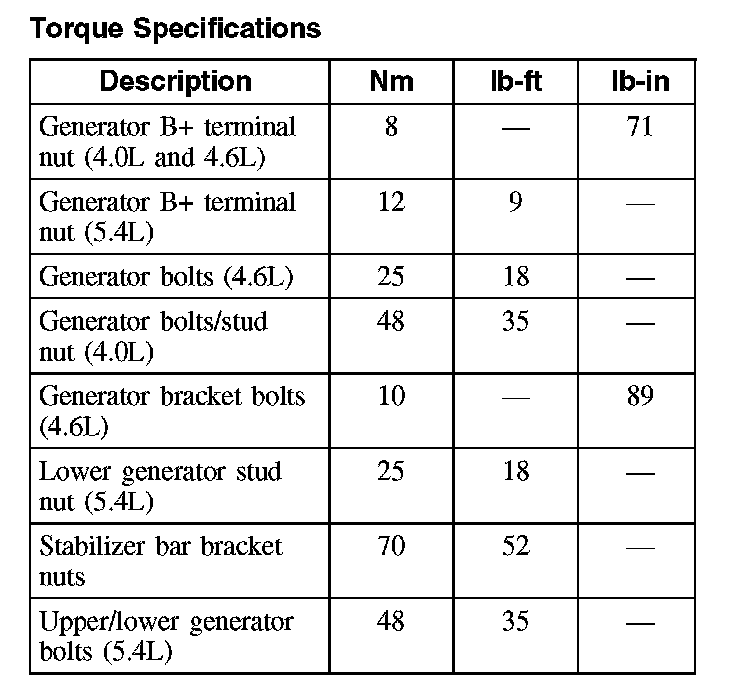 Torque Specifications: