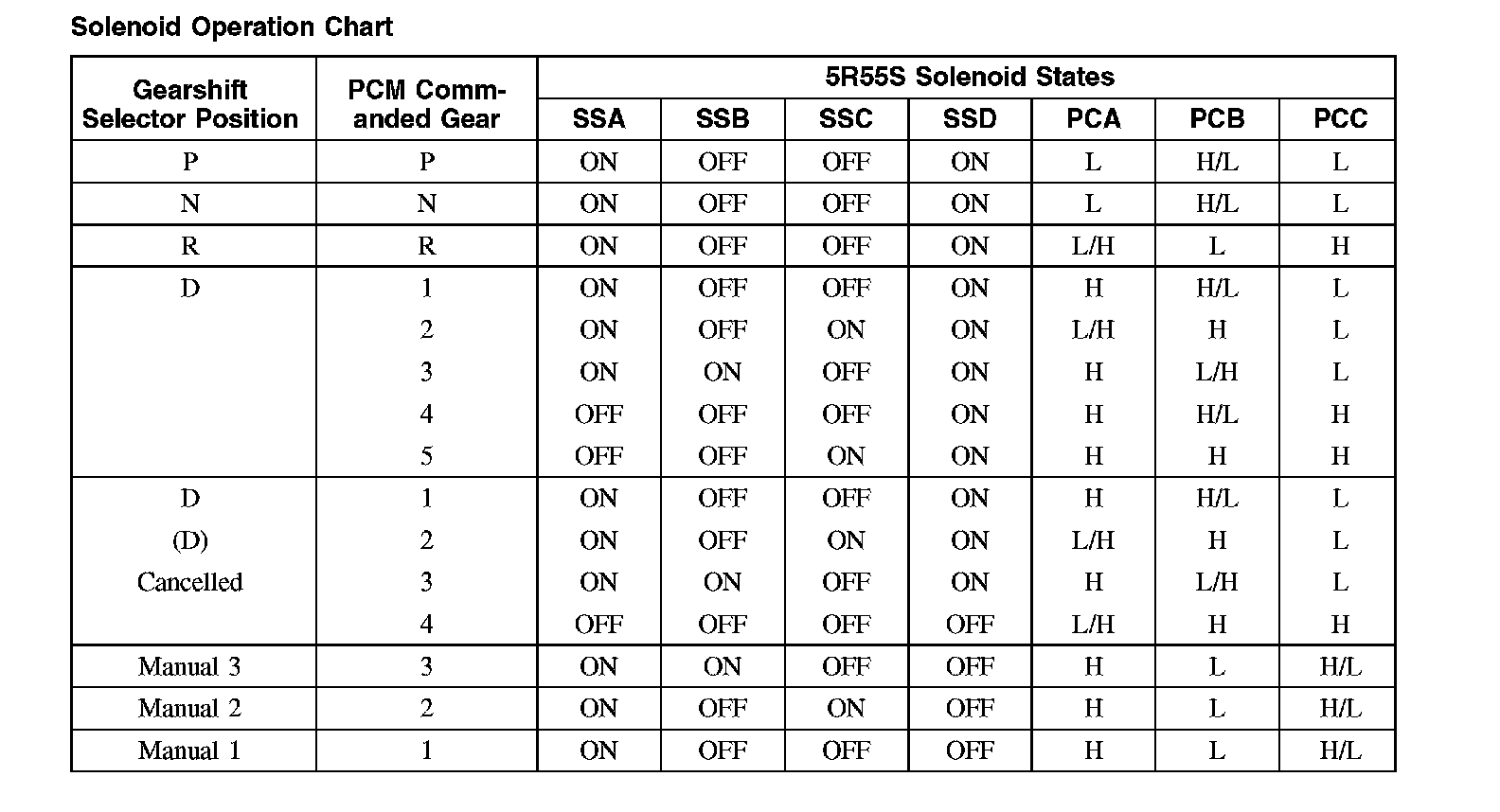 Solenoid Operation Chart
