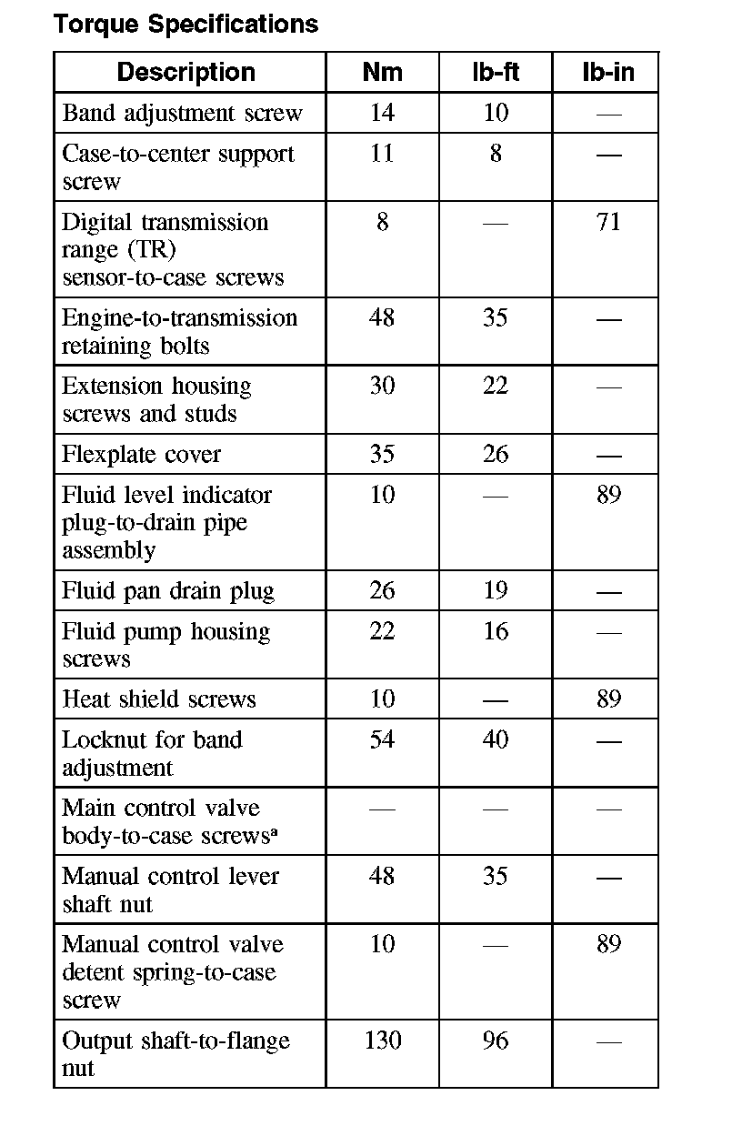 Torque Specifications (Part 1):