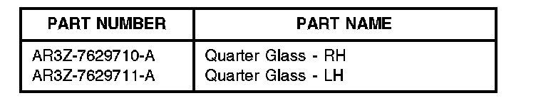 1. Replace the quarter glass assembly, the seal is not serviced separately. Refer to Workshop Manual (WSM), Section 501-11.