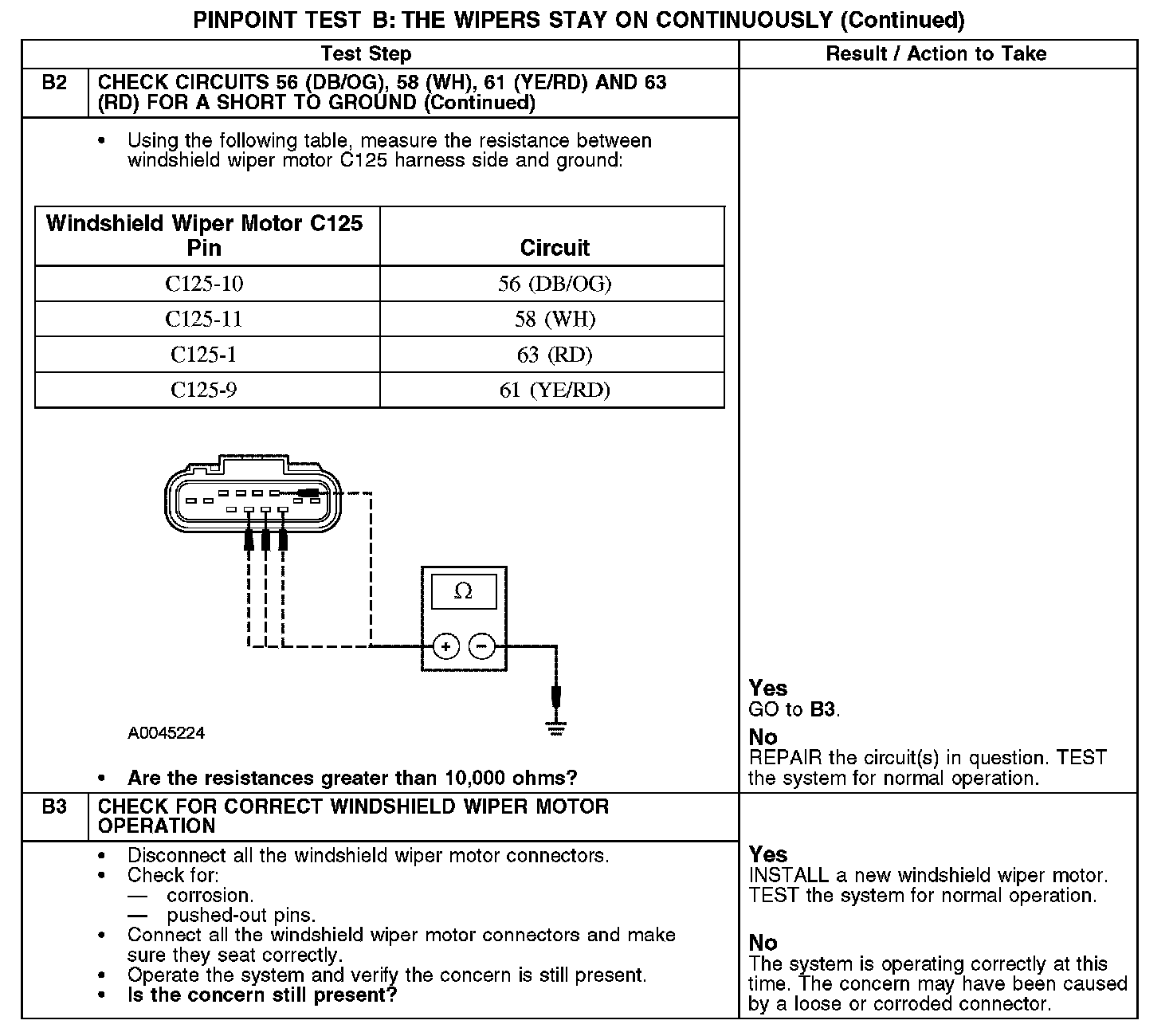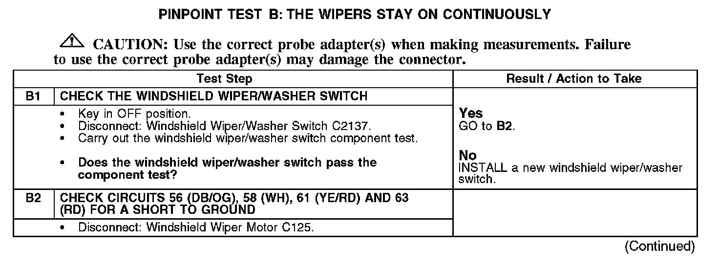 PINPOINT TEST B: THE WIPERS STAY ON CONTINUOUSLYNormal Operation