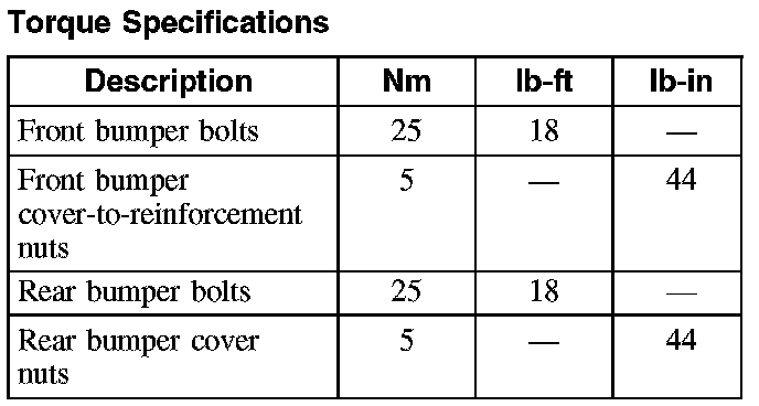Torque Specifications: