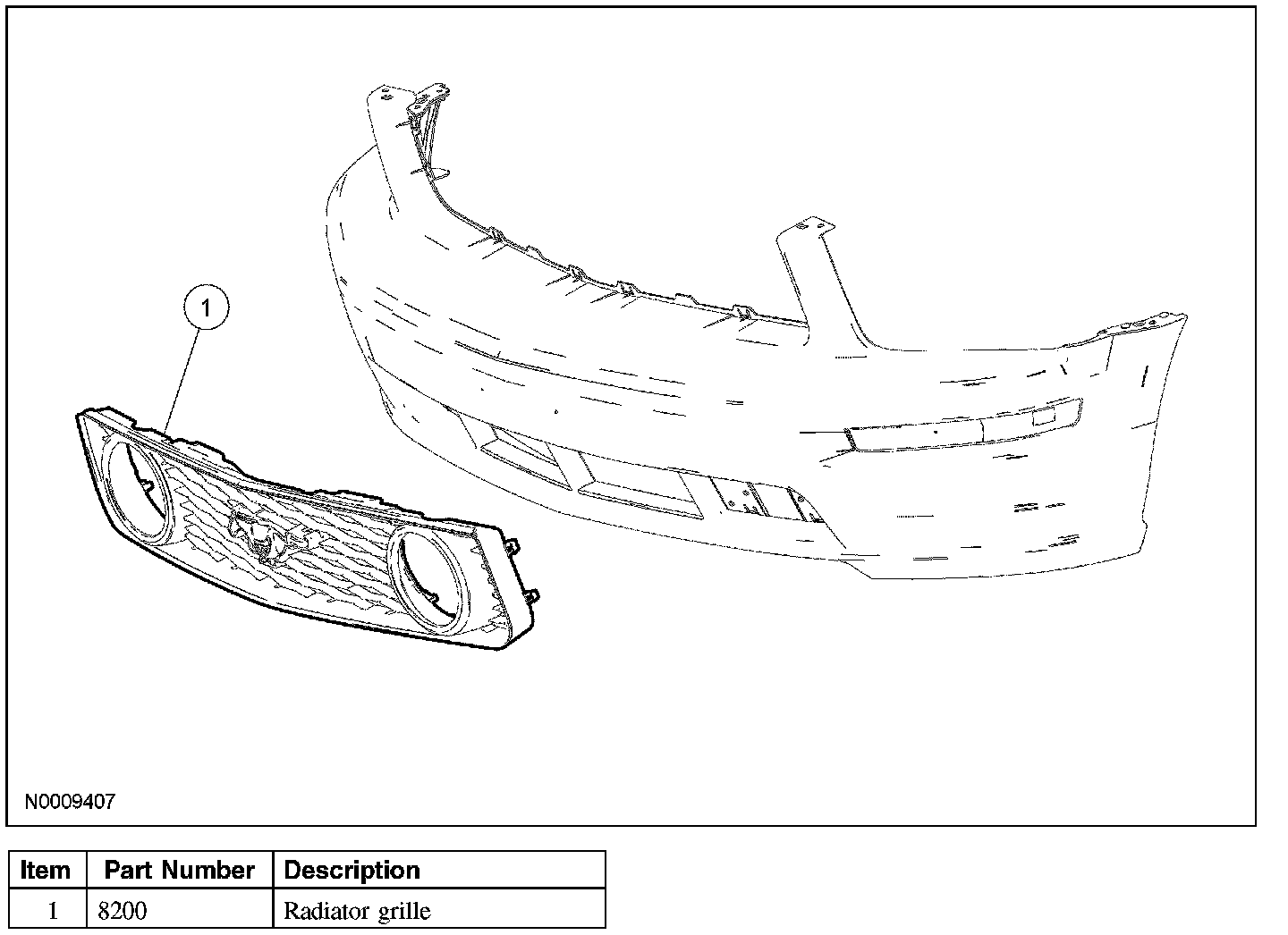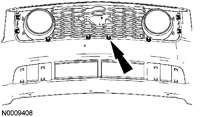 2. Release the radiator grille retaining clips from the front bumper cover and remove the radiator grille.