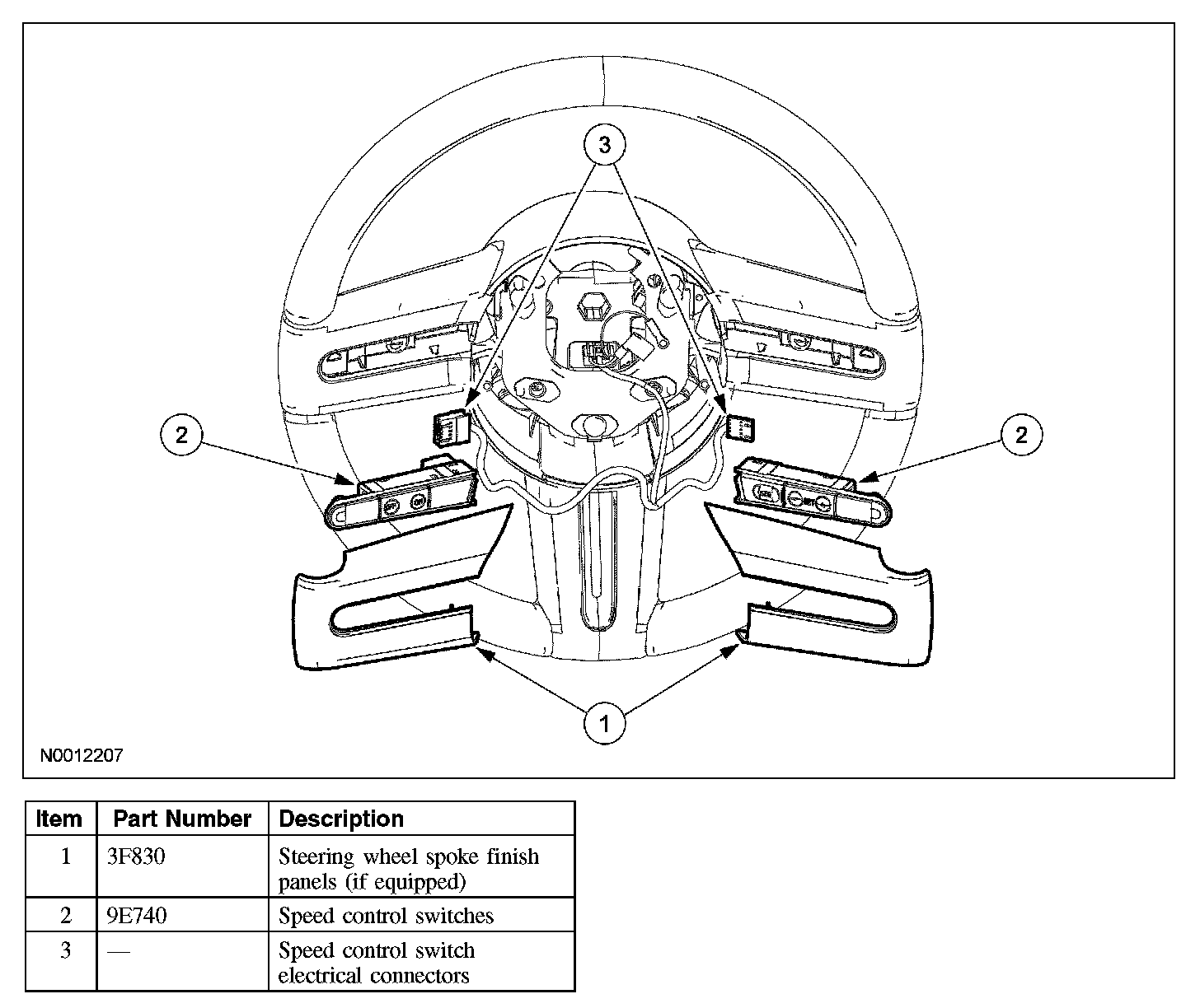 2. NOTE: Carefully grasp and pull the edges to remove the steering wheel spoke finish panels.