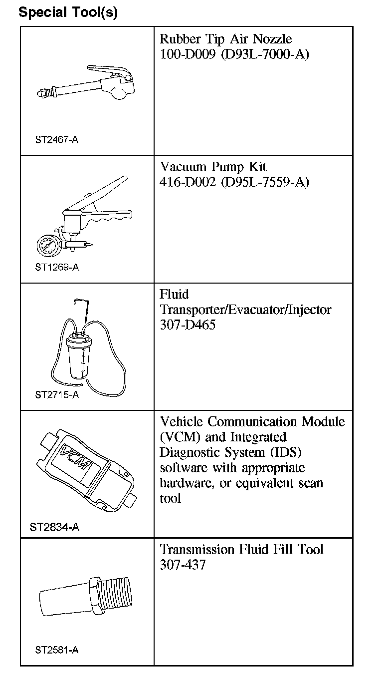 9. NOTE: Prior to filling the special tool with clean transmission fluid, make sure that the canister is clean.
