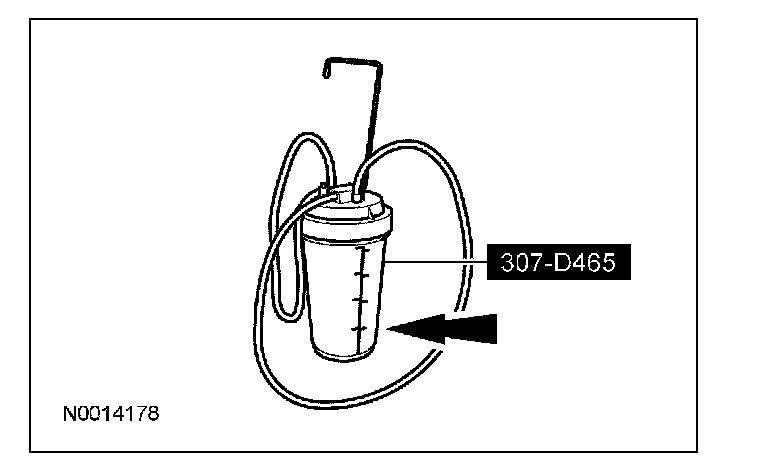 14. Inspect the fluid level in the special tool. If the fluid drains back into the canister, the transmission is full. If no fluid drains back, more fluid will need to be added. Repeat Steps 12 and 13.