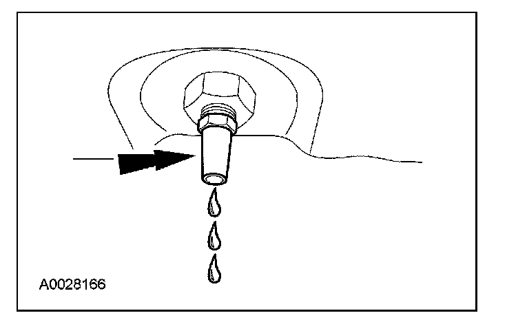 16. Allow the fluid to drain. Make sure that the fluid temperature is between 27° C - 49° C (80° F - 120° F). When the fluid comes out as a thin stream or drip, the fluid is at the correct level.