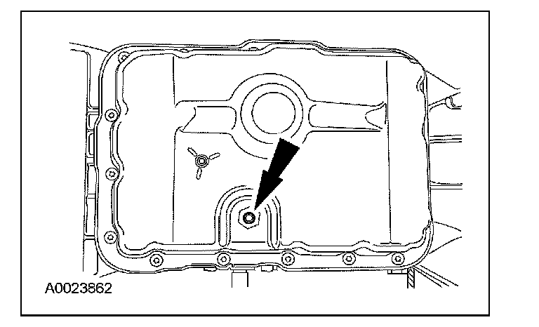 ^ Connect the open end of the fluid hose from the Fluid Transporter/Evacuator/Injector to the Fluid Level and Fill Plug Adapter at the bottom of the transmission fluid pan.