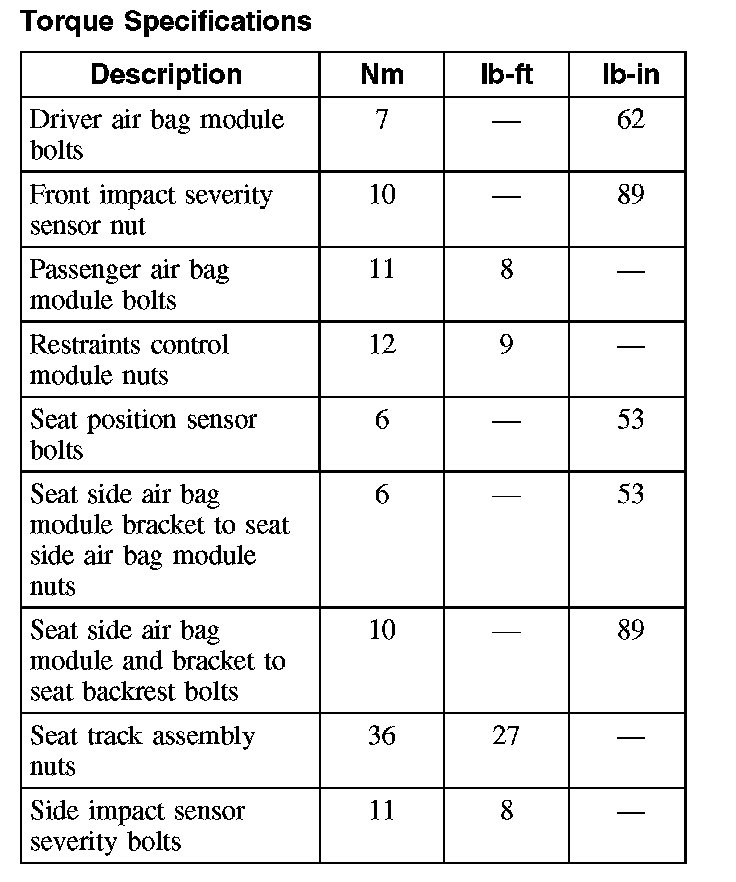 Torque Specifications: