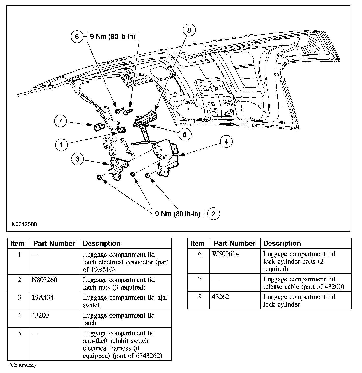 LUGGAGE COMPARTMENT LID LATCHRemoval and Installation