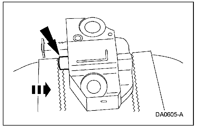 4. Install a suitable pin into the hole of each tensioner housing to hold the ratchet assembly and plunger in place during installation.