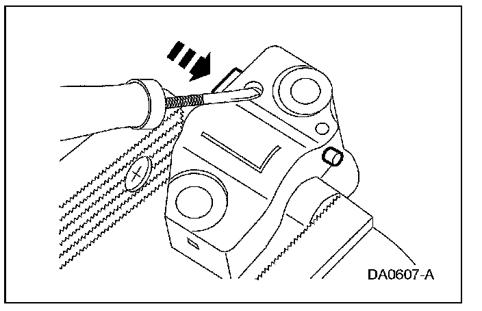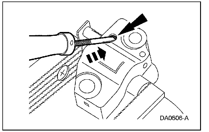 2. Using a small screwdriver or pick, push back and hold the ratchet mechanism