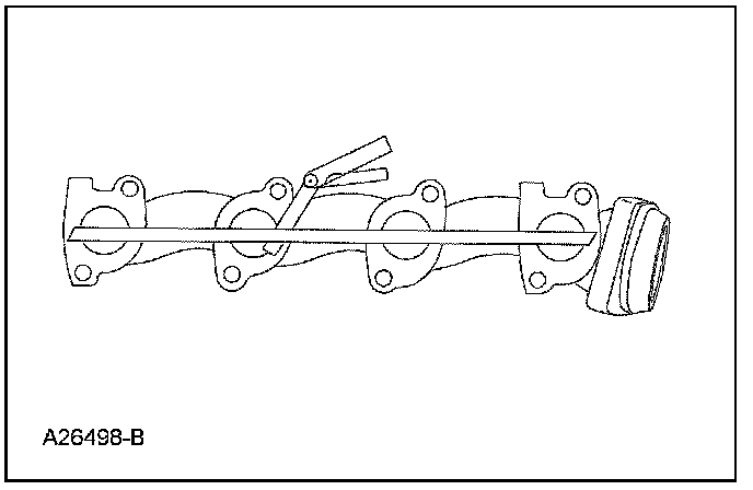 Using the precision straight edge and a feeler gauge, check the exhaust manifold sealing surface for warpage. If the warpage is greater than 0.76 mm (0.0299 in), install a new exhaust manifold.