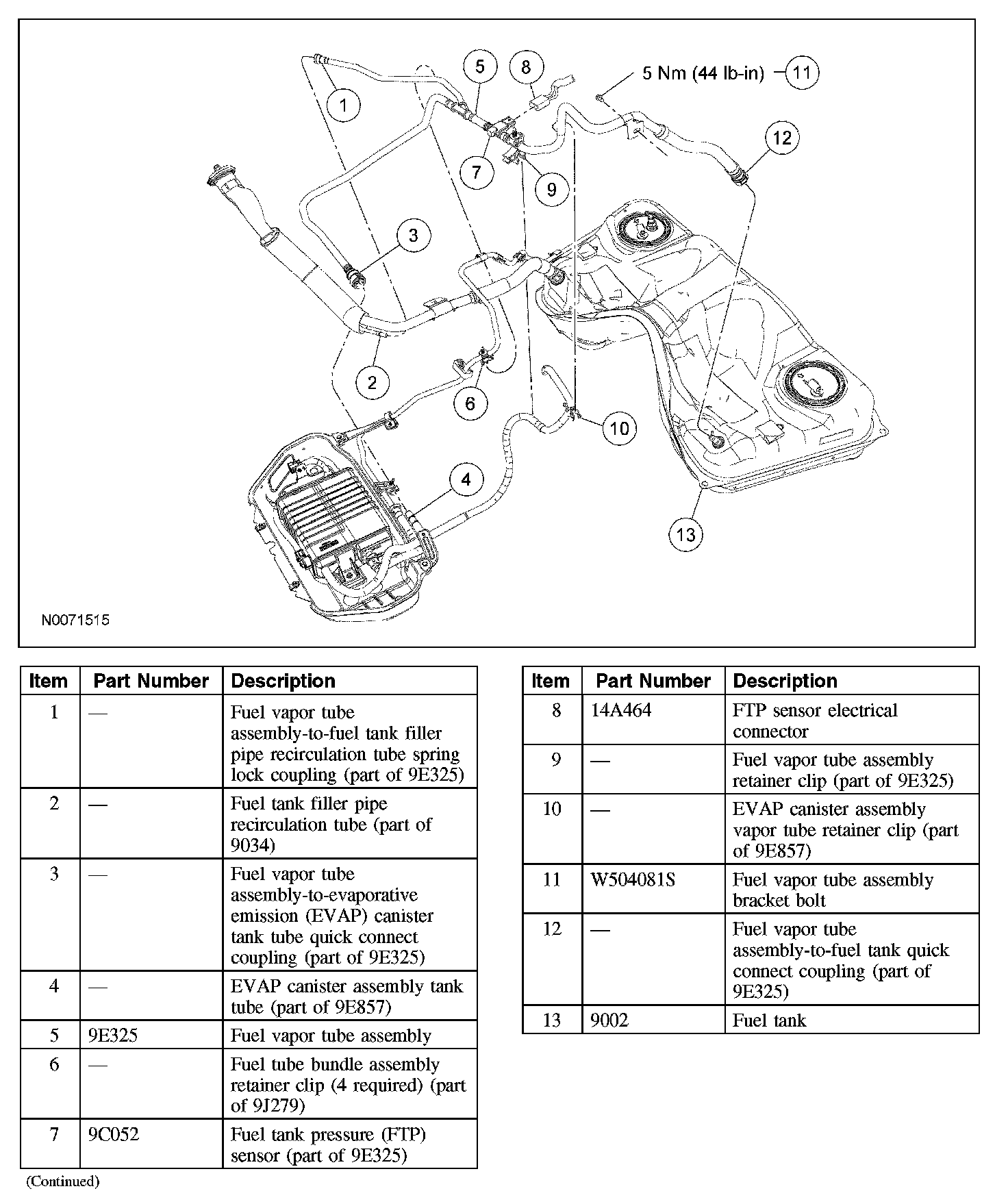 FUEL VAPOR TUBE ASSEMBLYRemoval and Installation