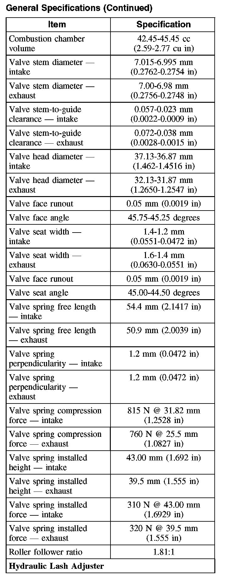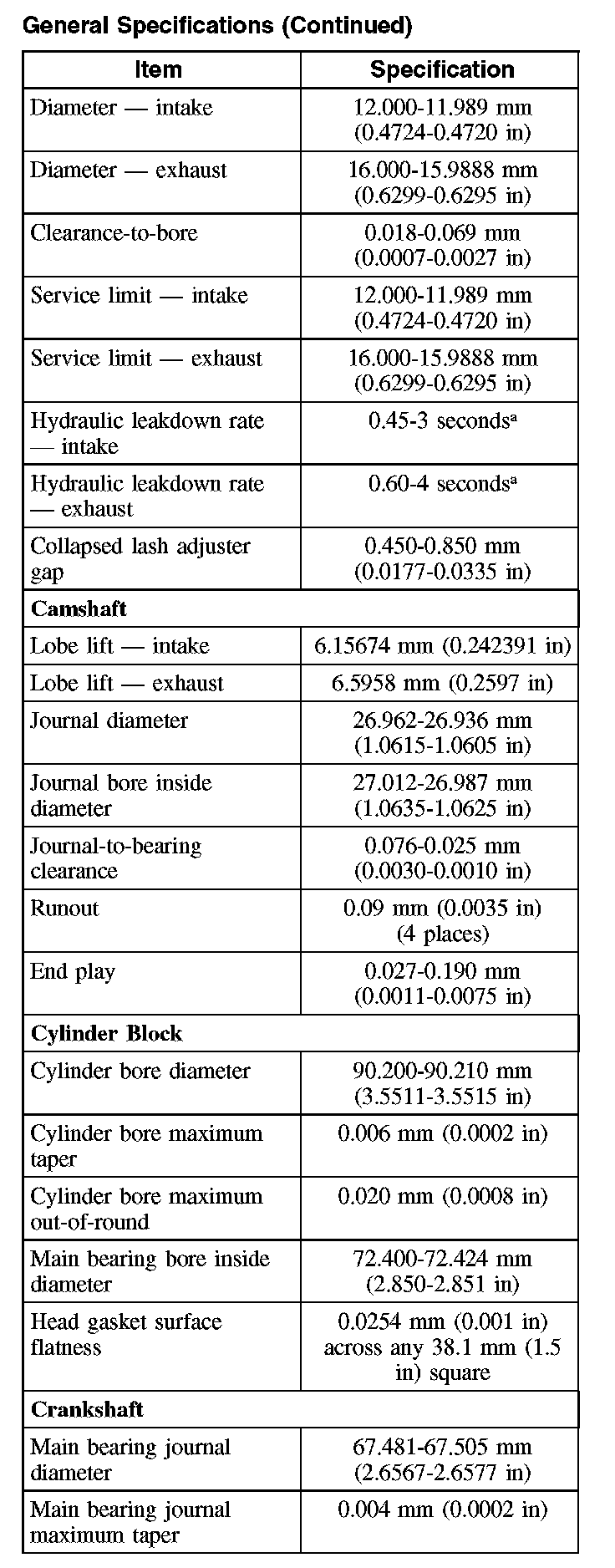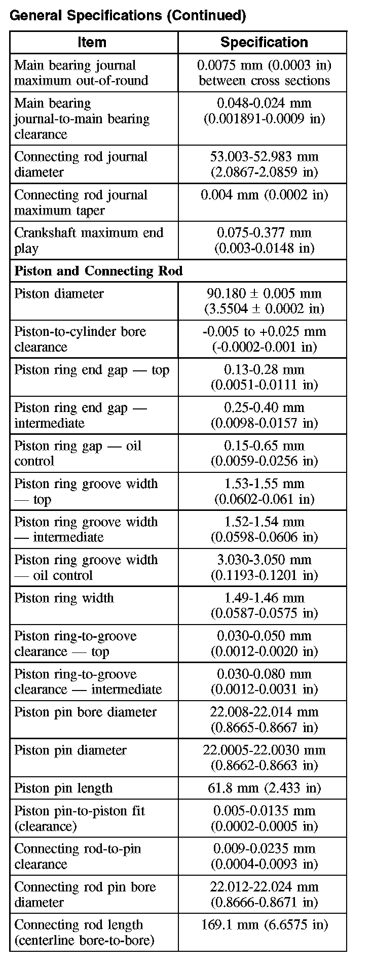 General Specifications